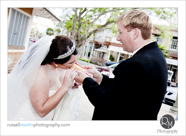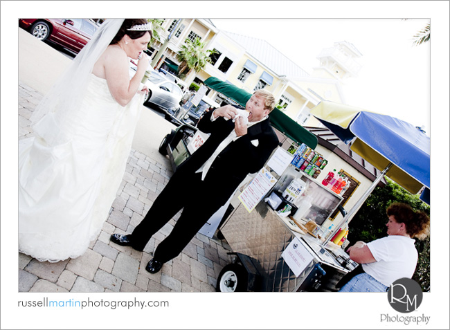 Saturday, Jennifer and Eric were married at the Waterfront Inn in the Villages. We started the day off early and were able to capture a lot of great carefree moments between them on the golf course, dancing on the square at Lake Sumter Landing, and even grabbing a hot dog on the way to their ceremony. We were able to get numerous images of the happy couple and even a few with their precious dogs. We achieved the easy, stress-free environment by taking time before their ceremony to capture the loving excitement between them.